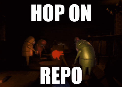 ការពណ៌នាអំពីខ្លឹមសារ: a poster that says hop on repo with a group of robots on it