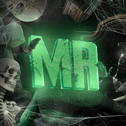 ការពណ៌នាអំពីខ្លឹមសារ: the word mr is surrounded by skeletons and bats