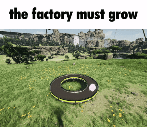 ការពណ៌នាអំពីខ្លឹមសារ: a video game scene with a circle in the middle and the words the factory must grow