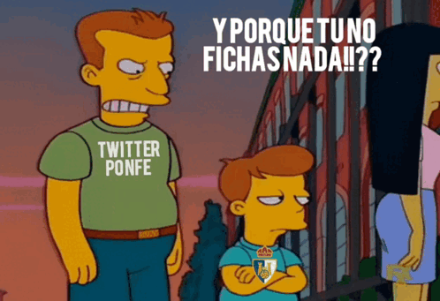 ការពណ៌នាអំពីខ្លឹមសារ: a man wearing a twitter ponfe shirt stands next to a boy