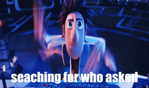 ការពណ៌នាអំពីខ្លឹមសារ: a cartoon character with the words ' seaching for who asked ' below him
