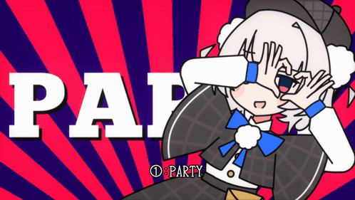 ការពណ៌នាអំពីខ្លឹមសារ: a cartoon of a girl covering her eyes with her hands with the word party in the background