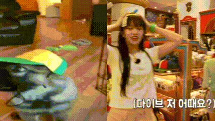 ការពណ៌នាអំពីខ្លឹមសារ: a cat is wearing a hat and a woman is wearing a hat in a room .