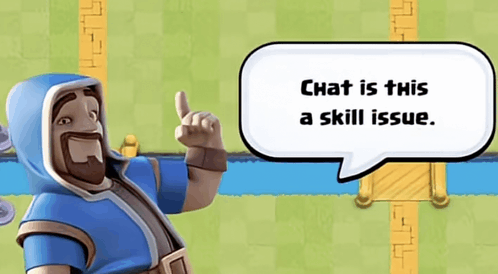 ការពណ៌នាអំពីខ្លឹមសារ: a cartoon character with a speech bubble that reads chat is this a skill issue