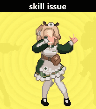ការពណ៌នាអំពីខ្លឹមសារ: a pixel art of a girl in a maid outfit with the words skill issue written above her