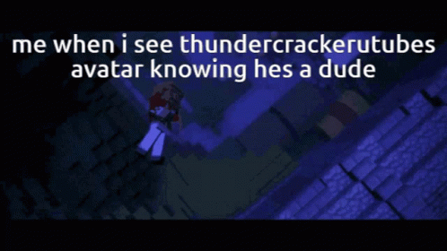 ការពណ៌នាអំពីខ្លឹមសារ: a screenshot of a video game that says me when i see thundercrackertubes avatar knowing