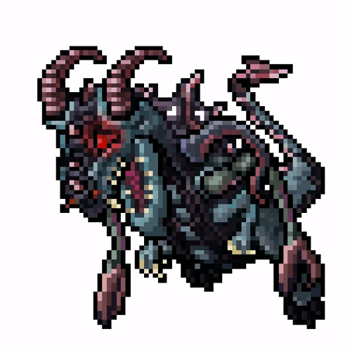 ការពណ៌នាអំពីខ្លឹមសារ: a pixel art illustration of a monster with horns