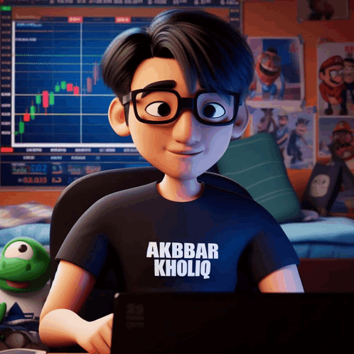 ការពណ៌នាអំពីខ្លឹមសារ: a cartoon character is wearing a black shirt that says akbar kholiq