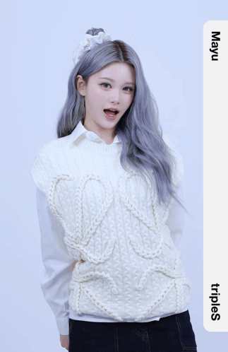 ការពណ៌នាអំពីខ្លឹមសារ: a girl with gray hair is wearing a white sweater vest and a white shirt