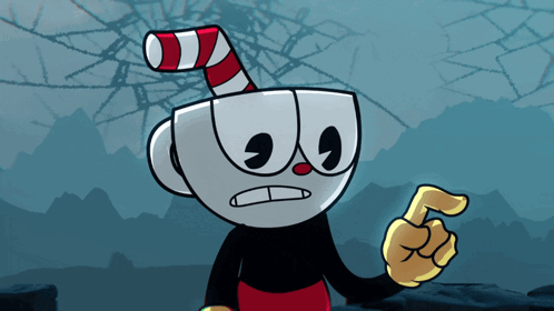 ការពណ៌នាអំពីខ្លឹមសារ: a cartoon character with a cup on his head and a red and white striped cane