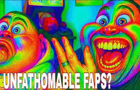 ការពណ៌នាអំពីខ្លឹមសារ: a colorful painting of a man with a ring on his finger and the words `` unfathomable faps '' .