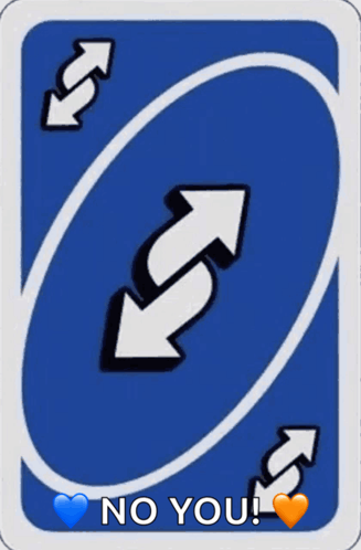 ការពណ៌នាអំពីខ្លឹមសារ: a blue uno card with arrows pointing in opposite directions and the words no you