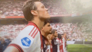 ការពណ៌នាអំពីខ្លឹមសារ: a group of soccer players are standing in a line on a soccer field with their eyes closed .