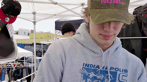 ការពណ៌នាអំពីខ្លឹមសារ: a man wearing a tuesday hat and an indianapolis sweatshirt