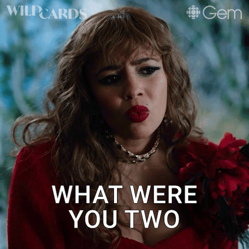 ការពណ៌នាអំពីខ្លឹមសារ: a woman in a red dress is making a face and says " what were you two "