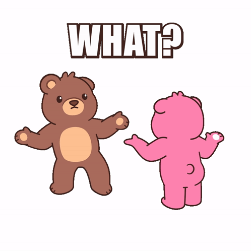 ការពណ៌នាអំពីខ្លឹមសារ: a brown teddy bear and a pink teddy bear standing next to each other with the words what written above them