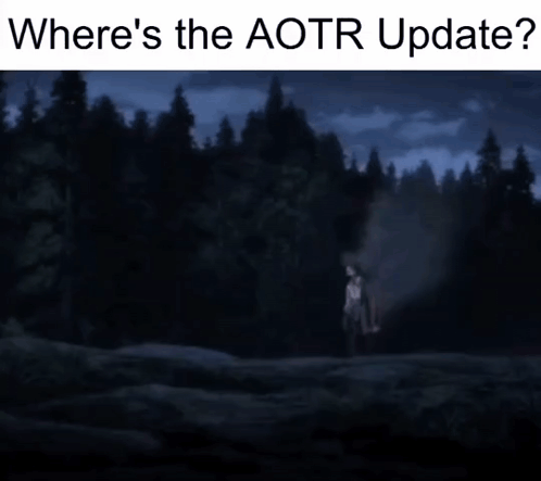 ការពណ៌នាអំពីខ្លឹមសារ: a cartoon of a man in a forest with the words where 's the aotr update