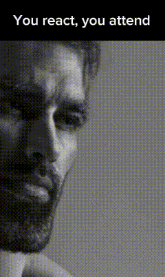 ការពណ៌នាអំពីខ្លឹមសារ: a black and white photo of a man with the words " you react you attend " above him