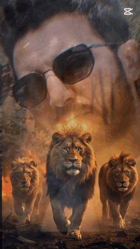 ការពណ៌នាអំពីខ្លឹមសារ: a man wearing sunglasses is surrounded by three lion cubs