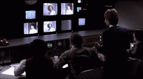 ຄຳອະທິບາຍເນື້ອຫາ: a group of people are sitting in front of a bunch of television screens