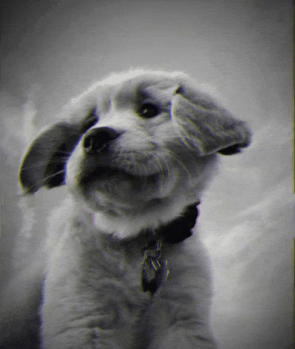 Опис на содржините: a black and white photo of a puppy with a name tag