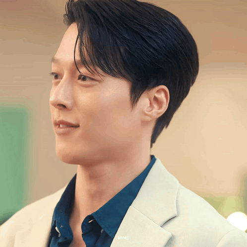 a close up of a man 's face with the name anneji visible