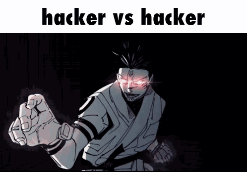 - ഉള്ളടക്കത്തിന്റെ വിവരണം: a cartoon of a karate man with the words hacker vs hacker on the bottom