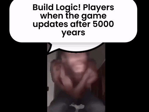 Descrierea conținutului: a speech bubble that says build logic players when the game updates after 5,000 years