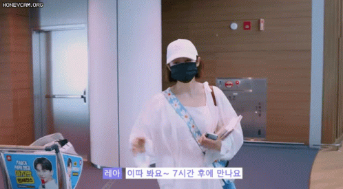 အကြောင်းအရာ ဖော်ပြချက်: a woman wearing a mask and a white hat is standing in a hallway