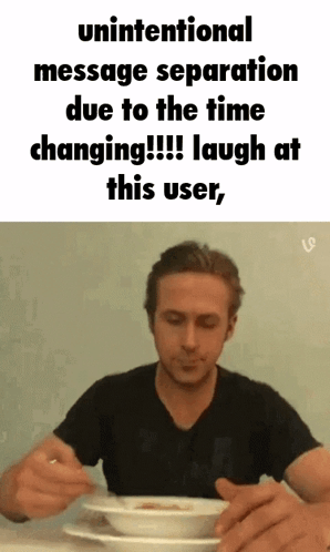 - ਸਮੱਗਰੀ ਦਾ ਵਰਣਨ: a man is sitting at a table with a bowl of food and a caption that says unintentional message separation due to the time
