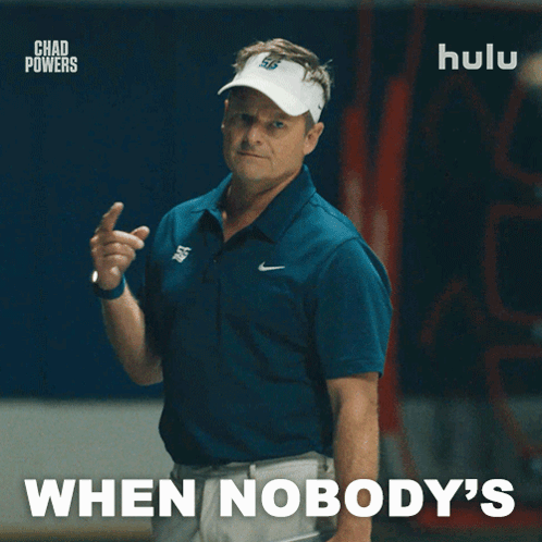 ਸਮੱਗਰੀ ਦਾ ਵਰਣਨ: a man in a blue shirt and white hat says " when nobody 's " in white letters