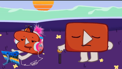 Descrição do conteúdo: a cartoon drawing of a youtube icon with headphones