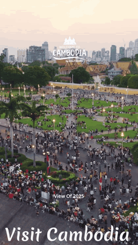 Opis vsebine: an advertisement for visit cambodia shows a large crowd of people in a park