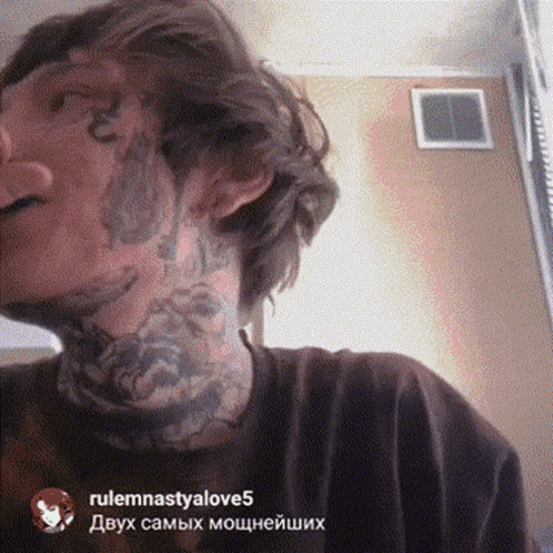 Maelezo ya Maudhui: a man with a lot of tattoos on his face has rulemnastyalove5 written on the bottom right