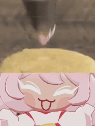 Maelezo ya Maudhui: a cartoon character with pink hair is smiling with a heart on her head