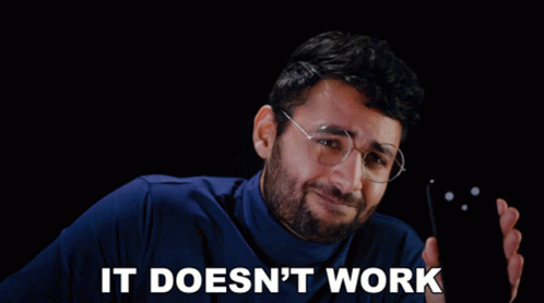 Maelezo ya Maudhui: a man holding a cell phone with the words it does n't work written below him