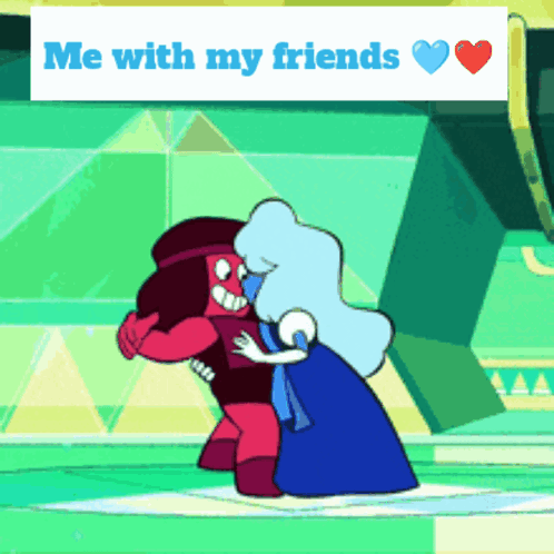 Maelezo ya Maudhui: a cartoon character hugging another character with the words me with my friends above them