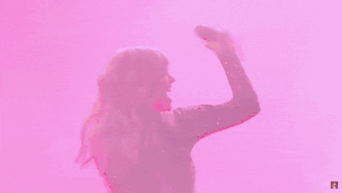 Maelezo ya Maudhui: taylor swift is dancing on stage in front of a pink background while wearing a black dress .