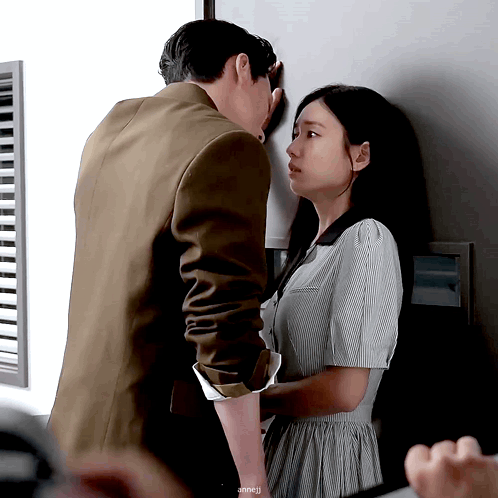 உள்ளடக்கத்திற்கான விளக்கம்: a man and a woman are kissing against a wall