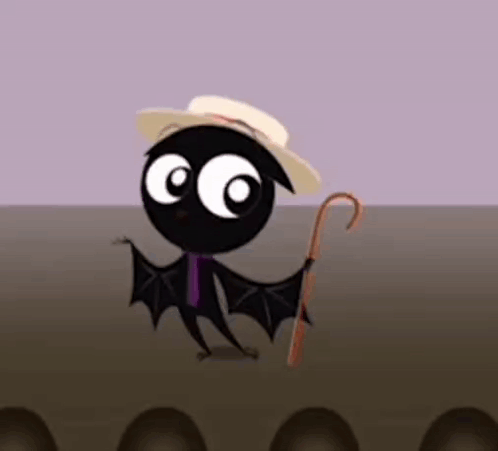- உள்ளடக்கத்திற்கான விளக்கம்: a black cartoon bat wearing a hat and tie is holding a cane .