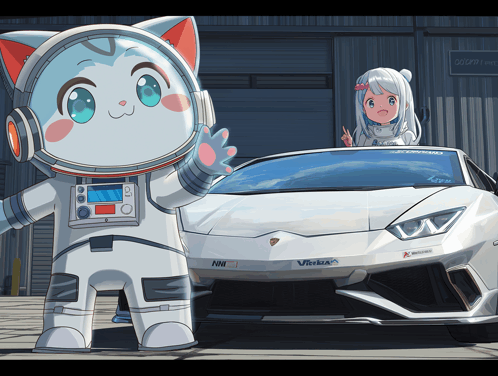 உள்ளடக்கத்திற்கான விளக்கம்: a cartoon character standing next to a white car that says nm on it
