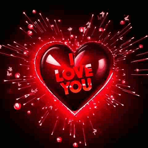 İçerik Açıklaması: a red heart with the words `` i love you '' written inside of it surrounded by fireworks .