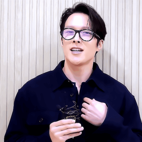Kontent tavsifi: a man wearing glasses and a blue jacket is holding something in his hand