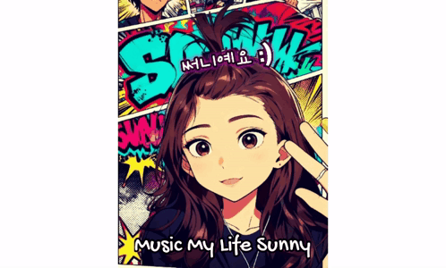 Content Description: a poster for music my life sunny shows a girl giving the peace sign