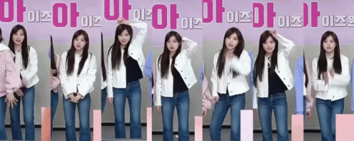 Content Description: a girl in a white jacket and jeans is standing in front of a wall with the letters o and i on it