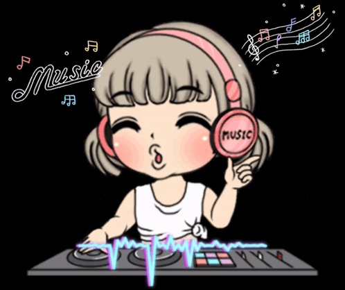 Content Description: a cartoon drawing of a girl wearing headphones that say music
