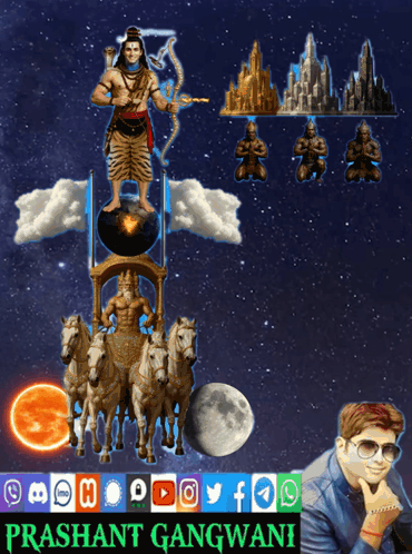 Content Description: a poster for prashant gangwani shows a man on a chariot