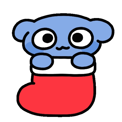 内容说明: a blue bear is sleeping in a red and white christmas stocking .