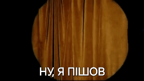 a close up of a person behind a curtain with the words ну я пишов written in white letters .