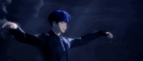 內容說明: a man with blue hair is wearing a black jacket and tie